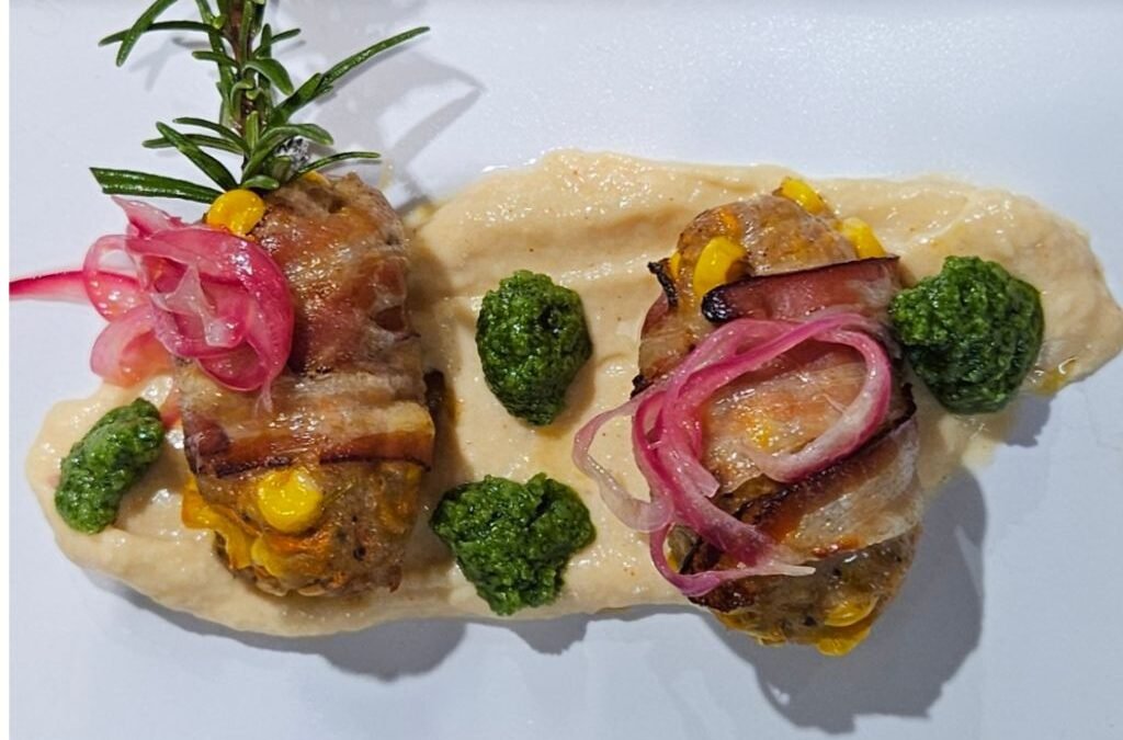 Not your average meatballs, but a true embrace of flavors and textures designed to enhance the contrast between the savory meat, cannellini bean hummus and the sweetness of marinated onions.